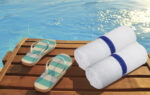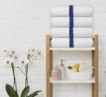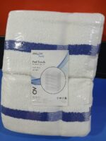 Pack Contains: This set includes 12 white bath towels, each with a stylish blue center stripe. Each towel measures 22 x 44 inches and features double-stitched hems for added durability and longevity. Perfect for a variety of uses around the house, at the pool, gym, or spa.